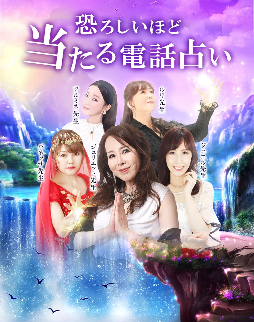 - 得意占術霊感霊視/水晶透視/未来好転術/魂読み/魂会話/赤い糸鑑定/アクションクリア/深永絆縁術/霊聴/心入霊視/思念伝達/高次交信/チャネリング/霊感タロット/スピリチュアルカウンセリング/魂彩幻想術/波動修正